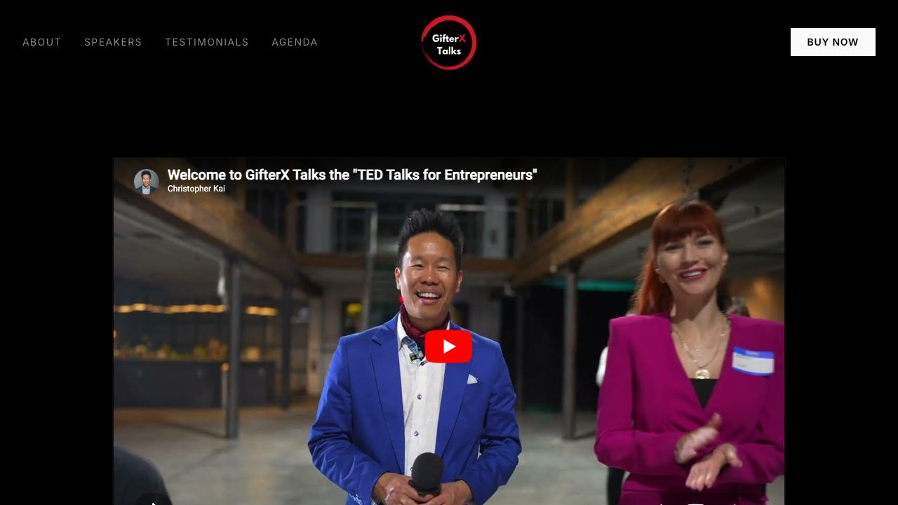 Premium event website for Christopher Kai's world-class entrepreneurship speaker series featuring past speakers like Elon Musk, TED founder Richard Saul Wurman, and Reebok co-founder Joe Foster